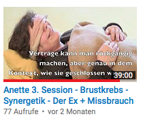 als sie sich von ihm trennte. Hier lesen Sie den gesamten Selbstheilungs-Verlauf der 17 Session als wörtliches Dokument auf 291 Seiten pdf. Untenstehend finden Sie die 17 Sessions auf Video, jeweils überarbeitet und gekürzt und von einer KI interpretiert. |