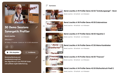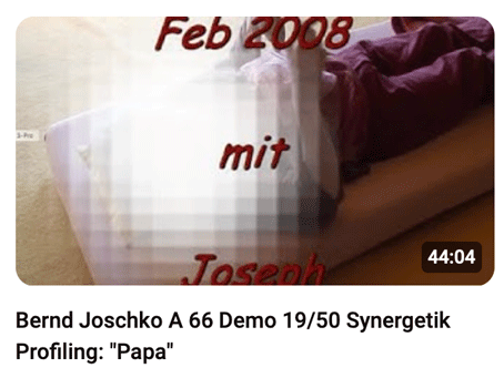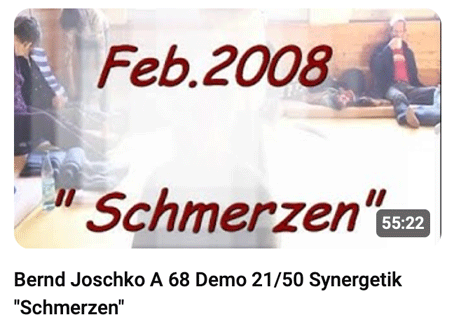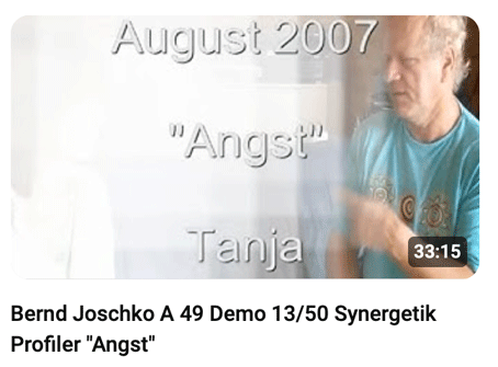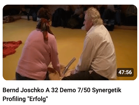 Bernd Joschko demonstrierte von Mai 2006 bis Februar 2010 an 34 Demo Wochenenden kostenlos Synergetik Profilings in seinem synergetischen Therapiezentrum Kamala: Die PSYCHE des Menschen ist sein Betriebssystem. Unter jeweils 20-50 Zuschauer wählte Bernd spontan